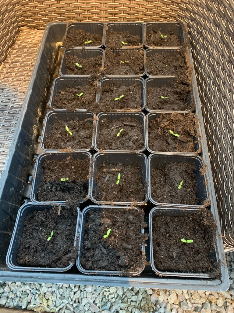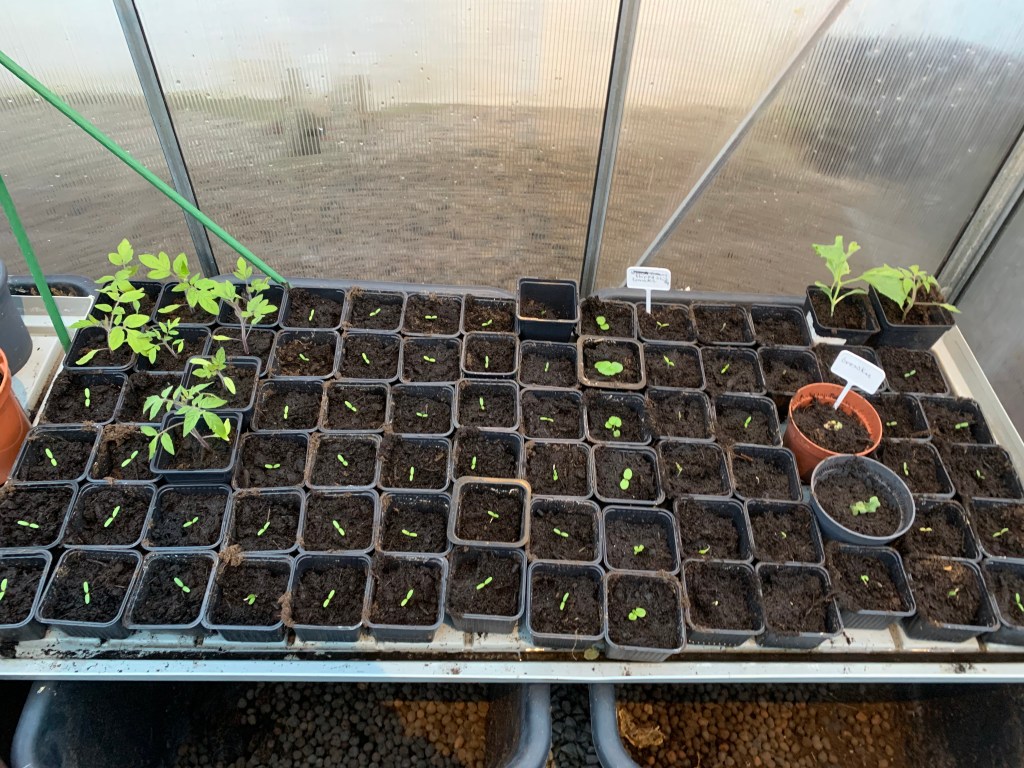 For 2 uker siden åpnet jeg drivhuset. I første omgang er det mitt nyeste drivhus da det står på bakken og ikke på platting som det andre. Jeg satte inn varmeovnen jeg kjøpte på Grønt Fokus i fjor og det har gått kjempebra. Vi har hatt minus grader og varmeovn går på ved 7 grader. Jeg koser meg masse med prikling der ute og slipper søling inne. Nå har jeg priklet masse tagetes.